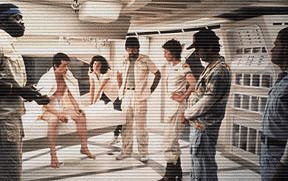 La siguiente película de Scott se estrena en 1979 y supone un auténtico cambio de registro. Del terreno histórico se pasa a la ciencia-ficción con una obra que marcó una época: Alien. Seguro que todos los amantes de las historias futuristas se la saben de memória: una nave de carga encuentra una nave espacial alienígena y, de una especie de huevo, sale un bicho que enrosca a la cara de uno de los astronautas. El bicho se desprende y el afectado se encuentra como nuevo... pero en mitad de la comida, en una de las escenas más memorables de la historia del cine, un monstruito sale de la barriga del pobre hombre (el gran actor John Hurt) y se pierde por los conductos de la nave, para volver hecho un pedazo de bicho que se carga a toda la tripulación. La película da la gran sorpresa porque el único personaje superviviente es una mujer (sin contar con el gato), personaje secundario durante casi todo el metraje, una Sigourney Weaver en braguitas. Su atmósfera oprimente y su gótico diseño, a cargo del diseñador Giger marcó época.